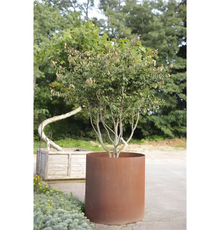 Dunkelbraun, abblätternde Rinde macht diese Pflanze zu einem Blickfang in jedem Garten.
