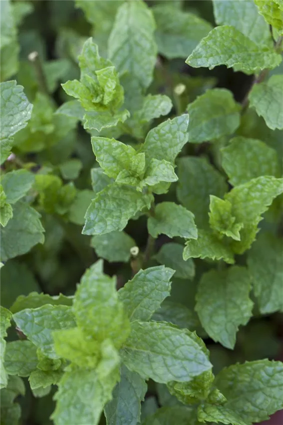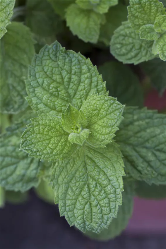 Mentha suaveolens 'Apple Mint' Apfel-Minze hat wie viele andere Sorten der Minze einen sehr ausgeprägten Verbreitungsdrang und kann, wenn ihr kein Einhalt geboten wird, andere Pflanzen verdrängen. Aufgrund ihrer Wuchshöhe – sie wird bis zu 80 Zentimeter hoch – passt die Apfel-Minze aber optimal in ein Staudenbeet. Die Blätter der Pflanze sind flaumig behaart und ermöglichen so das Wachstum in voller Sonne. Und obwohl die Apfel-Minze einen so samtigen Eindruck hat, ist sie äußerst winterhart.