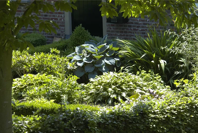 Hosta Die Blätter der Blattschmuckpflanzen können aber nicht nur besonders groß, sondern auch besonders bunt werden. Der Star unter den Blattschmuckpflanzen ist die Funkie. Sie zeigt sich mit gelbbunten, blauen oder grünen Blättern und weißen Rändern. Funkien sind für den Halbschatten besonders gut geeignet, weil ihre hellen Blätter in der Sonne schnell verbrennen würden. Kombiniert mit ein paar Ziergehölzen und Bodendeckern verwandet die Funkie schattige Plätze in farbenfrohe Ecken. Nicht zu unterschätzen sind auch die verschiedenen Nesselarten. Eine richtig gute Figur macht dabei die Schwarznessel. Sie liebt nicht nur die Sonne, sie überzeugt auch mit Blättern in einzigartigen Farben und Formen. Die oft unterschätzte Taubnessel steht ihr da aber in nichts nach und gehört ebenfalls zu den beliebten Blattschmuckpflanzen. Für den Auftritt im Hintergrund eignet sich der Wunderbaum hervorragend. Seine ganz besonderen Blätter bringen Farbe ins Spiel und machen den Garten im Sommer noch farbenfroher, als er ohnehin schon ist.